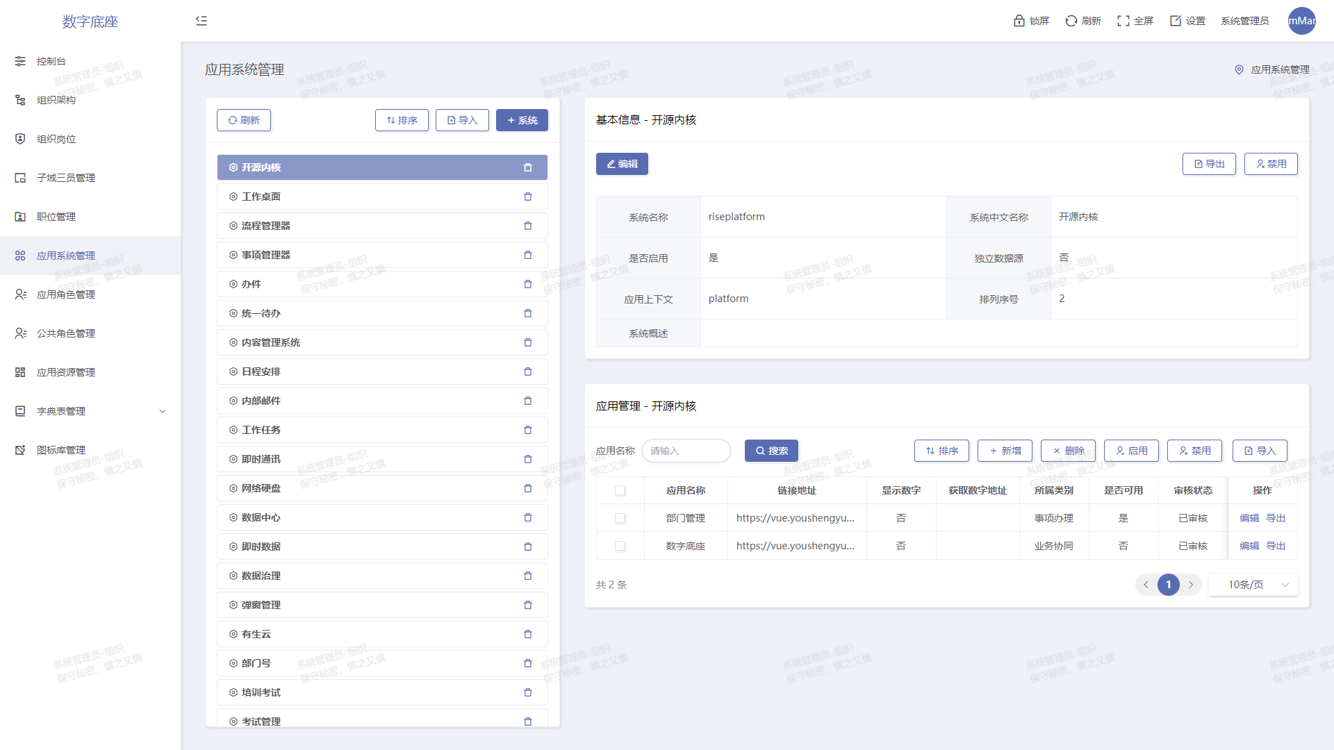以組織結(jié)構(gòu)和應用授權(quán)為主線,內(nèi)置三員管理、崗位制等功能